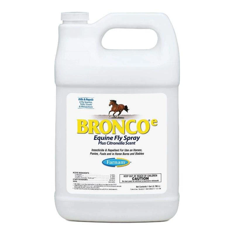 Bronco®e Equine Fly Spray is a staple for every stable. Kills six fly species, gnats, ticks, deer ticks, fleas, chiggers and lice! Insecticide and repellent for use on horses, ponies, foals and in horse barns and stables.