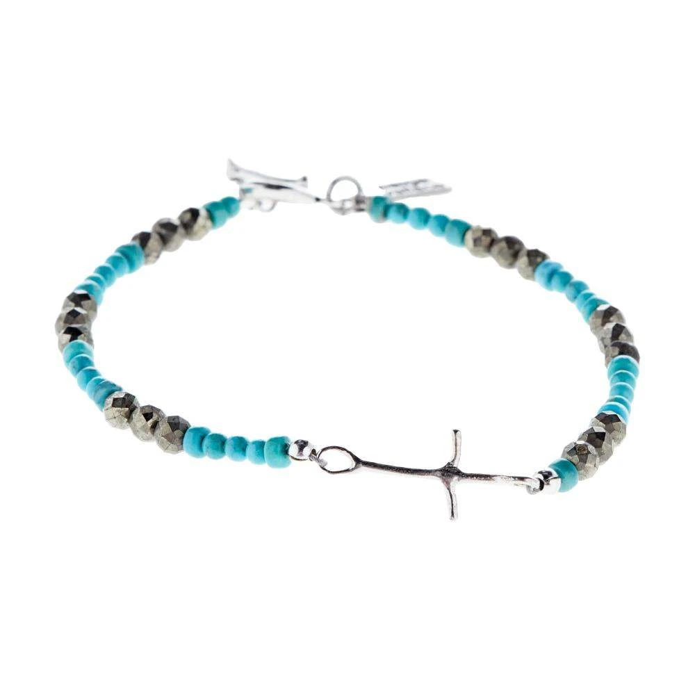 Step out in this simple Paige Wallace Turquoise Cross Bracelet.
