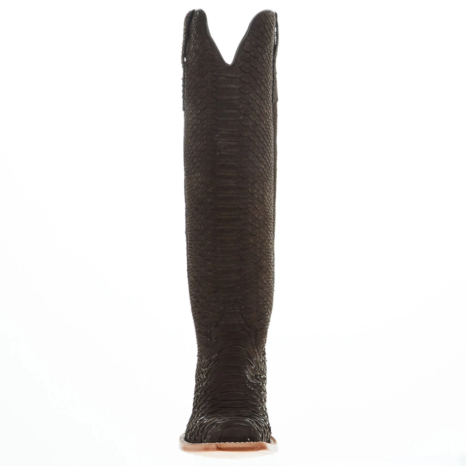 R. Watson presents these Chocolate Nubuck Python western boots. These boots have a 10 row stitch pattern, R. Watson comfort system, all leather stacked heel, counters, solid steel shank, and 10 iron outsole. All around boot for dress, chores or showing in the arena.